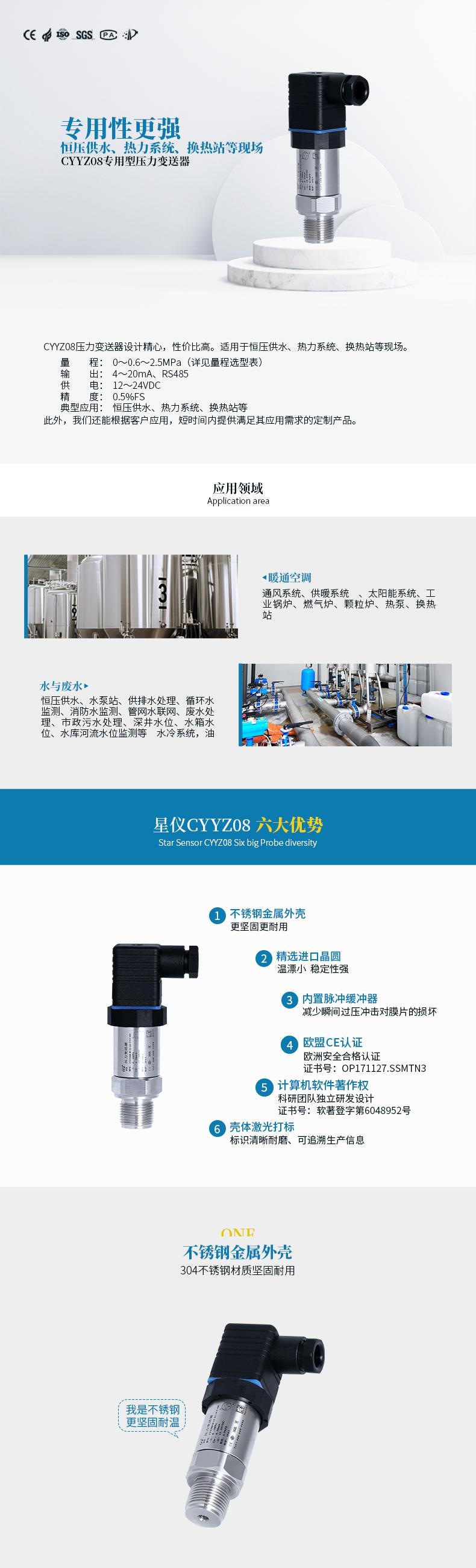 压力变送器CYYZ08 进口扩散硅 4-20mA气液油压 RS485恒压供水 传感器